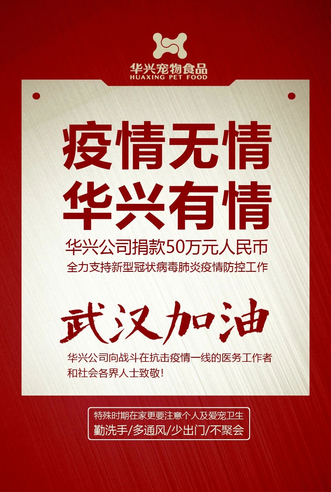 武漢加油,華興公司捐款50萬元,全力支持疫情防控工作