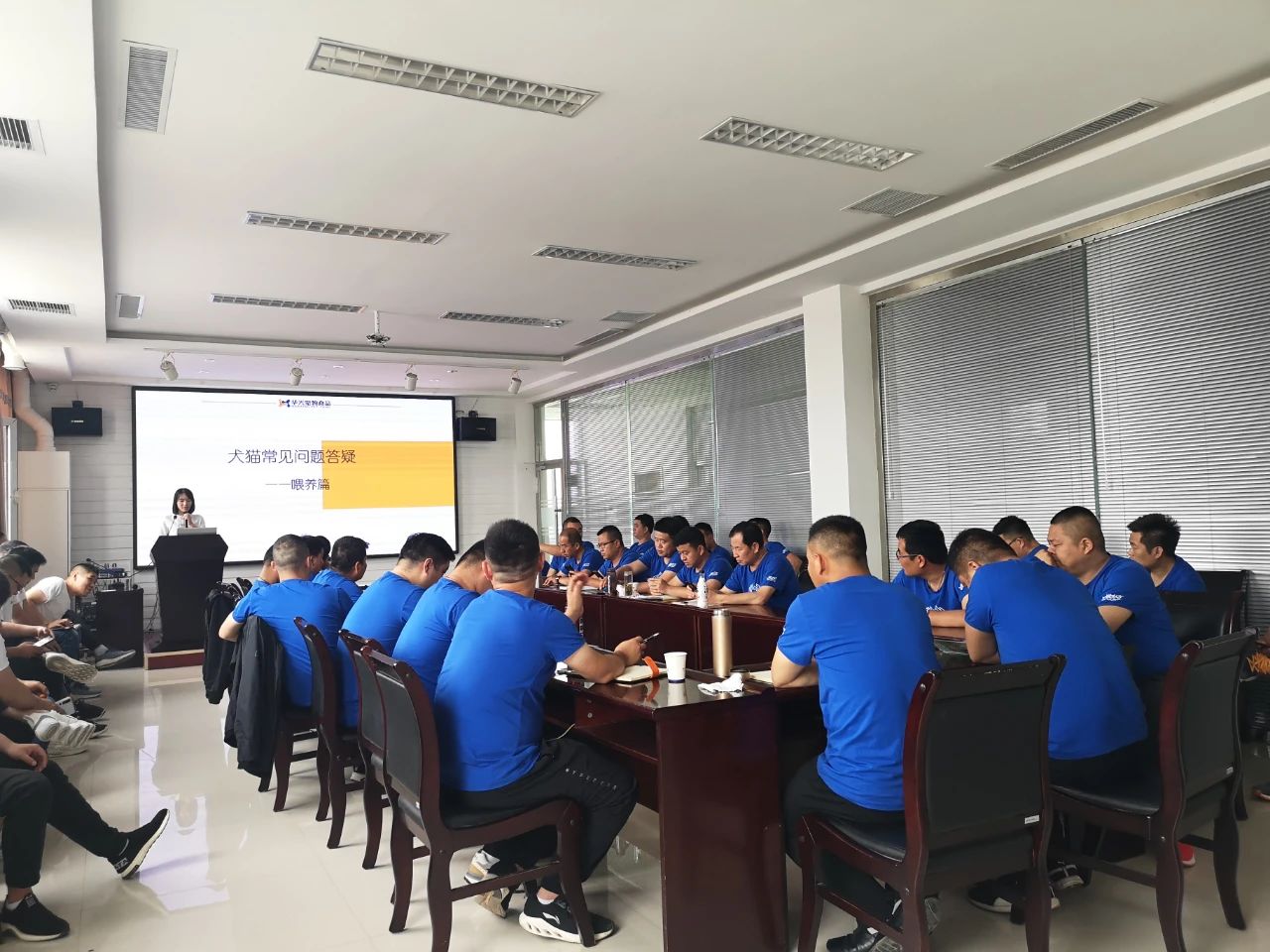 培訓會從“寵物營養及喂養答疑”,“品控質檢工作講解”,“品牌文化”和“企業文化”四方面進行了專業的課題講解。在培訓期間,全體區域業務經理認真聽講,專心記筆記,并積極與老師交流溝通。在學習中發現自己的問題,并解決問題,進一步提升自己,以期為客戶提供更加專業的服務而不斷地提升自己。